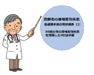 86歳の女性が腰椎変性疾患をMD法手術で克服しました。長年の痛みや生活の質の低下に悩まされ、薬物治療が無効な中、低侵襲手術で神経の圧迫を除去。術後2週間で驚異的回復を遂げ、日常生活に自立。希望を持てるメッセージが伝えられています。